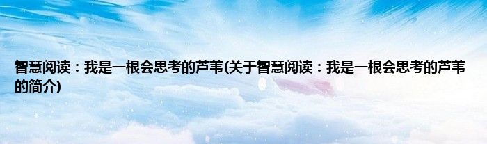 本文关于智慧阅读:我是一根会思考的芦苇的简介就讲解完毕,希望对大家有所帮助。