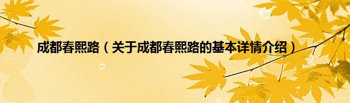 本文关于成都春熙路的基本详情介绍就讲解完毕,希望对大家有所帮助。