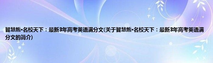 大家好,智慧熊·名校天下:最新3年高考英语满分文,关于智慧熊·名校天下:最新3年高考英语满分文的简介很多人还不知道,现在让我们一起来看看吧!
