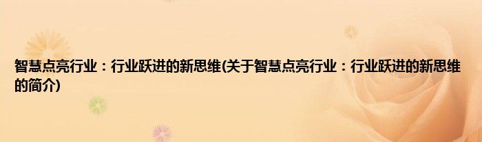 本文关于智慧点亮行业:行业跃进的新思维的简介就讲解完毕,希望对大家有所帮助。