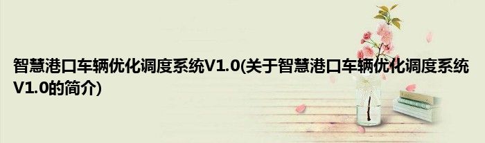 大家好,智慧港口车辆优化调度系统V1.0,关于智慧港口车辆优化调度系统V1.0的简介很多人还不知道,现在让我们一起来看看吧!