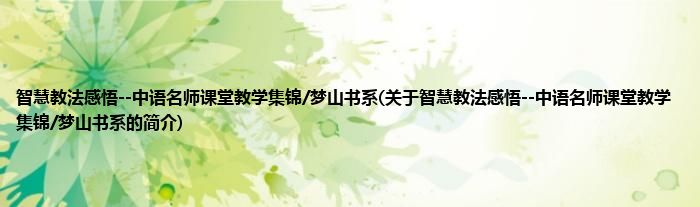 1、 《智慧教法感悟--中语名师课堂教学集锦/梦山书系》是福建教育出版社出版的图书。