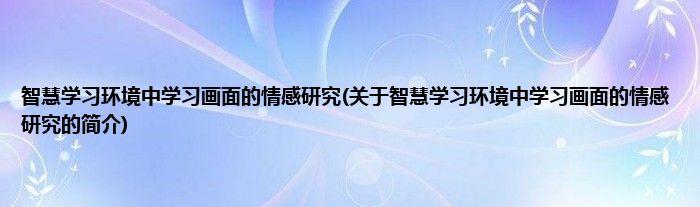 大家好,智慧学习环境中学习画面的情感研究,关于智慧学习环境中学习画面的情感研究的简介很多人还不知道,现在让我们一起来看看吧!