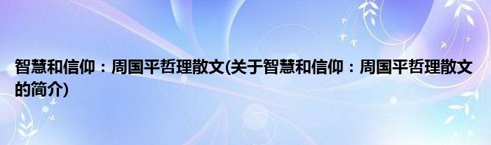 本文关于智慧和信仰:周国平哲理散文的简介就讲解完毕,希望对大家有所帮助。