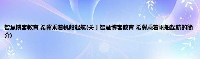本文关于智慧博客教育,希冀乘着帆船起航的简介就讲解完毕,希望对大家有所帮助。