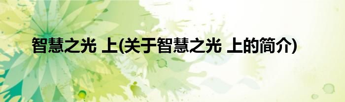 本文关于智慧之光 上的简介就讲解完毕,希望对大家有所帮助。