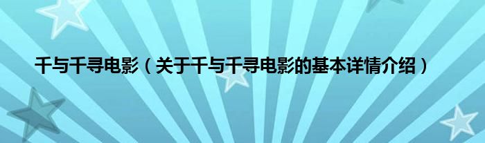 本文关于千与千寻电影的基本详情介绍就讲解完毕,希望对大家有所帮助。