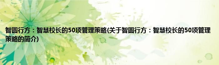 本文关于智圆行方:智慧校长的50项管理策略的简介就讲解完毕,希望对大家有所帮助。
