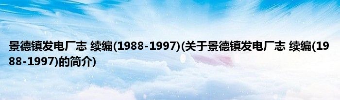 本文关于景德镇发电厂志 续编(1988-1997)的简介就讲解完毕,希望对大家有所帮助。