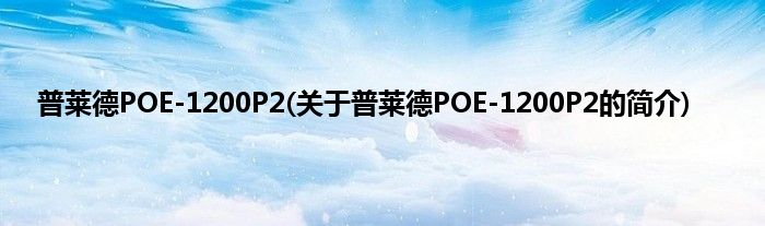大家好,普莱德POE-1200P2,关于普莱德POE-1200P2的简介很多人还不知道,现在让我们一起来看看吧!