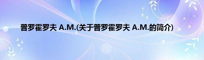 本文关于普罗霍罗夫,A.M.的简介就讲解完毕,希望对大家有所帮助。
