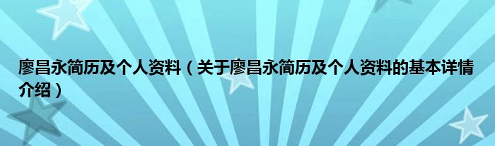 本文关于廖昌永简历及个人资料的基本详情介绍就讲解完毕,希望对大家有所帮助。