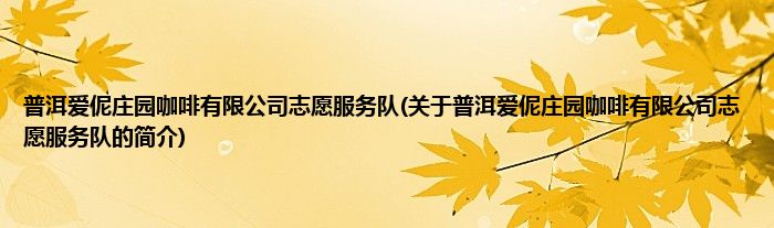本文关于普洱爱伲庄园咖啡有限公司志愿服务队的简介就讲解完毕,希望对大家有所帮助。