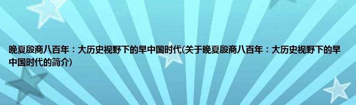 本文关于晚夏殷商八百年:大历史视野下的早中国时代的简介就讲解完毕,希望对大家有所帮助。