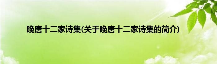 本文关于晚唐十二家诗集的简介就讲解完毕,希望对大家有所帮助。