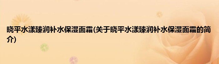 本文关于晓平水漾臻润补水保湿面霜的简介就讲解完毕,希望对大家有所帮助。