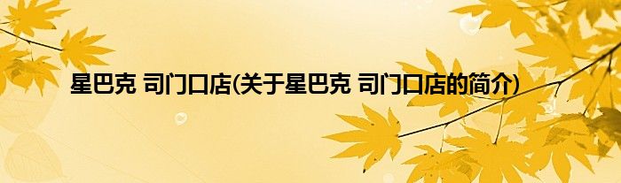 本文关于星巴克 司门口店的简介就讲解完毕,希望对大家有所帮助。
