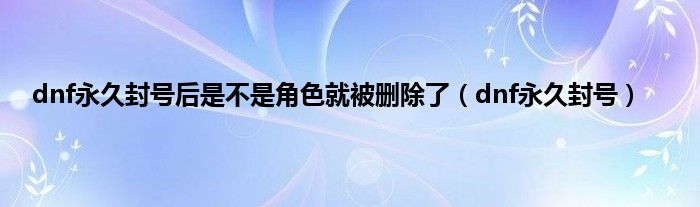 大家好,精选小编来为大家解答以上问题。dnf永久封号后是不是角色就被删除了,dnf永久封号很多人还不知道,现在让我们一起来看看吧!