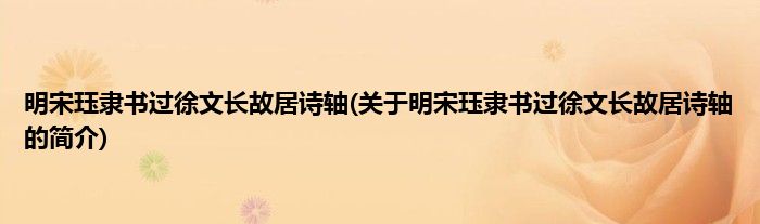 本文关于明宋珏隶书过徐文长故居诗轴的简介就讲解完毕,希望对大家有所帮助。