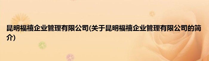 本文关于昆明福禧企业管理有限公司的简介就讲解完毕,希望对大家有所帮助。