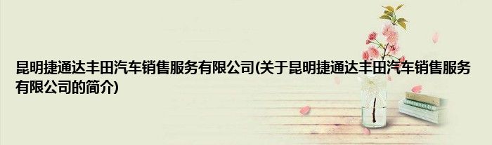 本文关于昆明捷通达丰田汽车销售服务有限公司的简介就讲解完毕,希望对大家有所帮助。