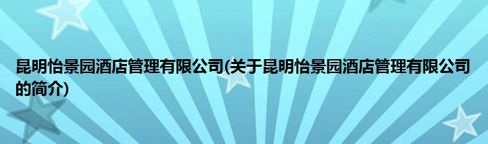 本文关于昆明怡景园酒店管理有限公司的简介就讲解完毕,希望对大家有所帮助。