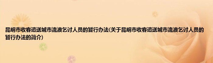 大家好,昆明市收容遣送城市流浪乞讨人员的暂行办法,关于昆明市收容遣送城市流浪乞讨人员的暂行办法的简介很多人还不知道,现在让我们一起来看看吧!