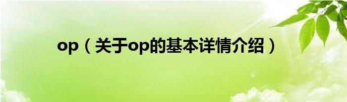 大家好我是小蝌蚪,op,关于op的基本详情介绍很多人还不知道,那么现在让我们一起来看看吧!