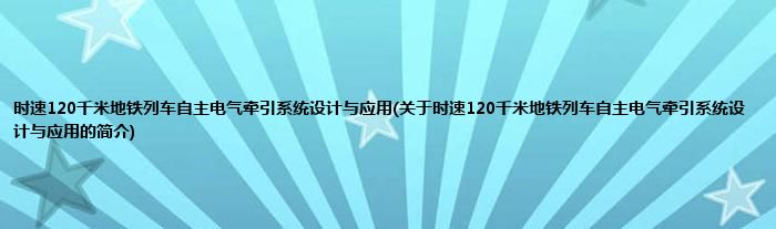 本文关于时速120千米地铁列车自主电气牵引系统设计与应用的简介就讲解完毕,希望对大家有所帮助。