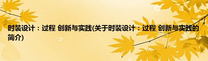 大家好,时装设计:过程。创新与实践,关于时装设计:过程。创新与实践的简介很多人还不知道,现在让我们一起来看看吧!