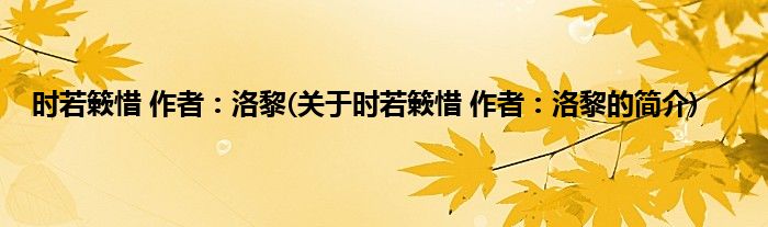 时若簌惜 作者:洛黎(关于时若簌惜 作者:洛黎的简介)