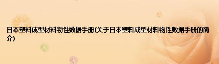 本文关于日本塑料成型材料物性数据手册的简介就讲解完毕,希望对大家有所帮助。