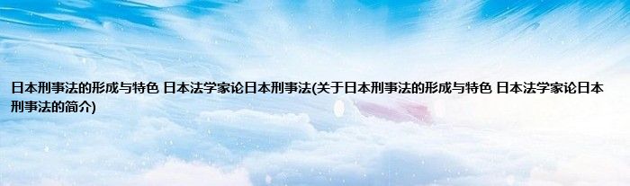 本文关于日本刑事法的形成与特色 日本法学家论日本刑事法的简介就讲解完毕,希望对大家有所帮助。