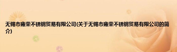 本文关于无锡市雍荣不锈钢贸易有限公司的简介就讲解完毕,希望对大家有所帮助。
