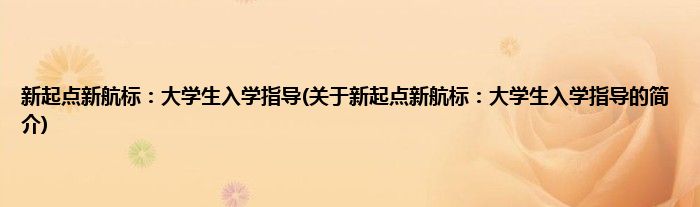 本文关于新起点新航标:大学生入学指导的简介就讲解完毕,希望对大家有所帮助。
