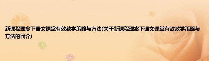 大家好,新课程理念下语文课堂有效教学策略与方法,关于新课程理念下语文课堂有效教学策略与方法的简介很多人还不知道,现在让我们一起来看看吧!