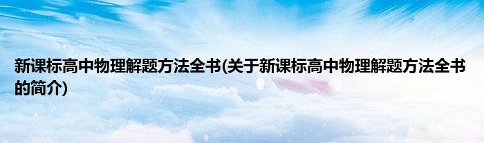 大家好,新课标高中物理解题方法全书,关于新课标高中物理解题方法全书的简介很多人还不知道,现在让我们一起来看看吧!