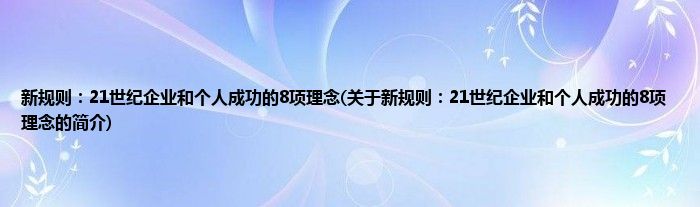 本文关于新规则:21世纪企业和个人成功的8项理念的简介就讲解完毕,希望对大家有所帮助。