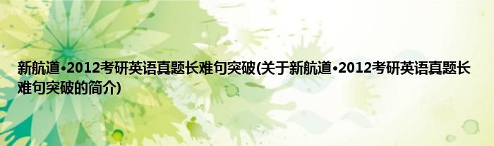 1、 《新航道·2012考研英语真题长难句突破》是2011年2月1日中国出版集团。