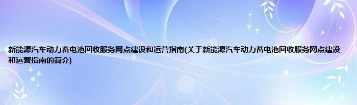 本文关于新能源汽车动力蓄电池回收服务网点建设和运营指南的简介就讲解完毕,希望对大家有所帮助。