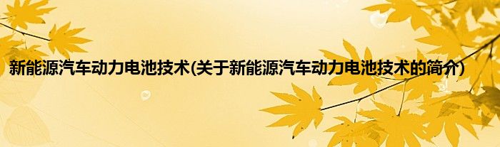 本文关于新能源汽车动力电池技术的简介就讲解完毕,希望对大家有所帮助。