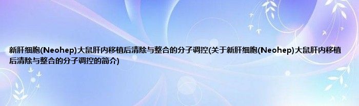 本文关于新肝细胞(Neohep)大鼠肝内移植后清除与整合的分子调控的简介就讲解完毕,希望对大家有所帮助。