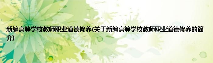 本文关于新编高等学校教师职业道德修养的简介就讲解完毕,希望对大家有所帮助。