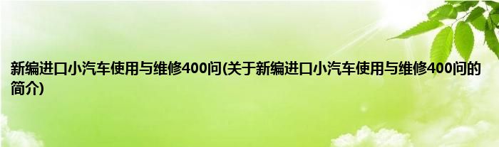 本文关于新编进口小汽车使用与维修400问的简介就讲解完毕,希望对大家有所帮助。