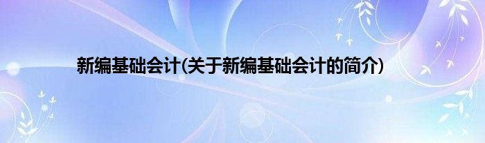 本文关于新编基础会计的简介就讲解完毕,希望对大家有所帮助。