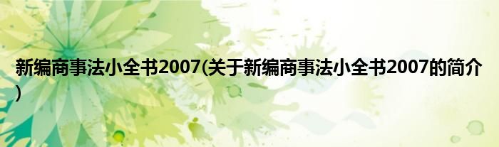 本文关于新编商事法小全书2007的简介就讲解完毕,希望对大家有所帮助。