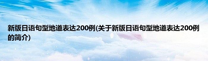 本文关于新版日语句型地道表达200例的简介就讲解完毕,希望对大家有所帮助。