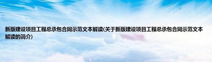 大家好,新版建设项目工程总承包合同示范文本解读,关于新版建设项目工程总承包合同示范文本解读的简介很多人还不知道,现在让我们一起来看看吧!