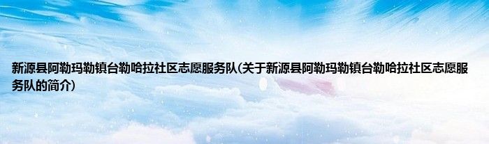 本文关于新源县阿勒玛勒镇台勒哈拉社区志愿服务队的简介就讲解完毕,希望对大家有所帮助。