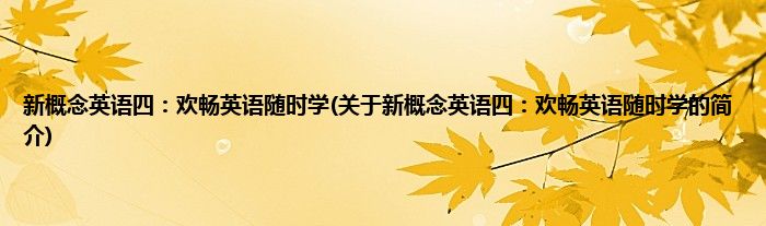 本文关于新概念英语四:欢畅英语随时学的简介就讲解完毕,希望对大家有所帮助。